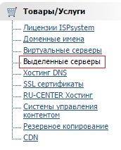 - Перейти в раздел «Товары / Услуги» → «Выделенные серверы»